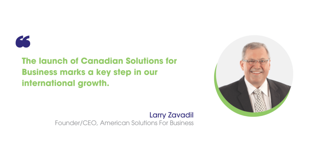 “The launch of Canadian Solutions for Business marks a key step in our international growth,” says Larry Zavadil, founder and CEO of ASB. “We’re eager to establish partnerships in Canada and conduct business in line with local practices.”