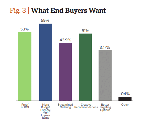 While this study proves that budgets are elastic rather than concrete, that does not mean that circumstances will always allow buyers to operate with flexible spending habits. Affected by any number of external factors, end buyers sometimes have to constrict their budgets. How they move forward under those conditions is an important point for promo firms to consider.