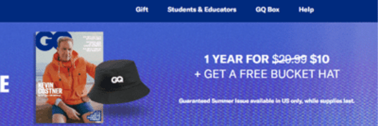 But there’s a twist: The page features an ad for a bucket hat emblazoned with the GQ logo as an enticement for new subscribers.