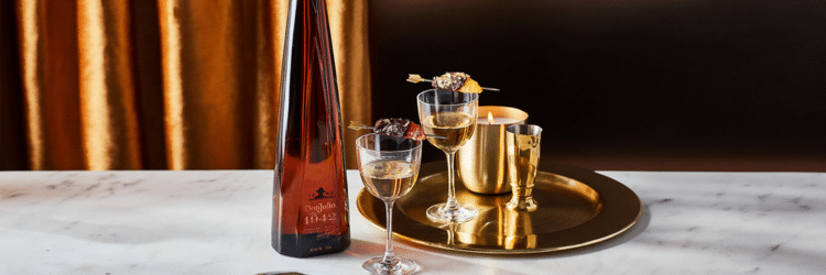 Sporting a shimmering gold tuxedo jacket and holding a full-size 750ml bottle of Don Julio 1942, Rodriguez lifted his cocktail glass and invited the rest of the audience to raise their own miniature versions of the tequila brand’s slender brown bottle and join him in a rambling toast.