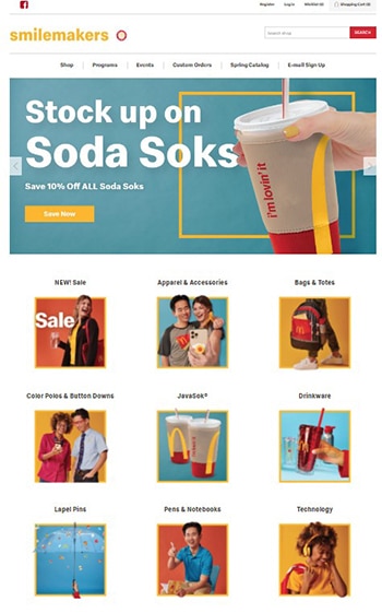 Smilemakers serves McDonald’s audiences with seasonal and evergreen branded merchandise collections that support a variety of solutions, from crew care and incentives to customer promotional giveaways and rewards to corporate events and milestone recognition. These carefully curated collections are available via a fully integrated, e-commerce website promoted by a team of creative and digital marketing experts that drive enthusiasm and interest for McDonald’s branded merchandise. About 20 IMS team members worked on Smilemakersonline.com, a mobile-responsive site designed to deliver an intuitive and simple shopping experience. Users can easily shop for specific products, programs or events, or quickly request support for custom projects.