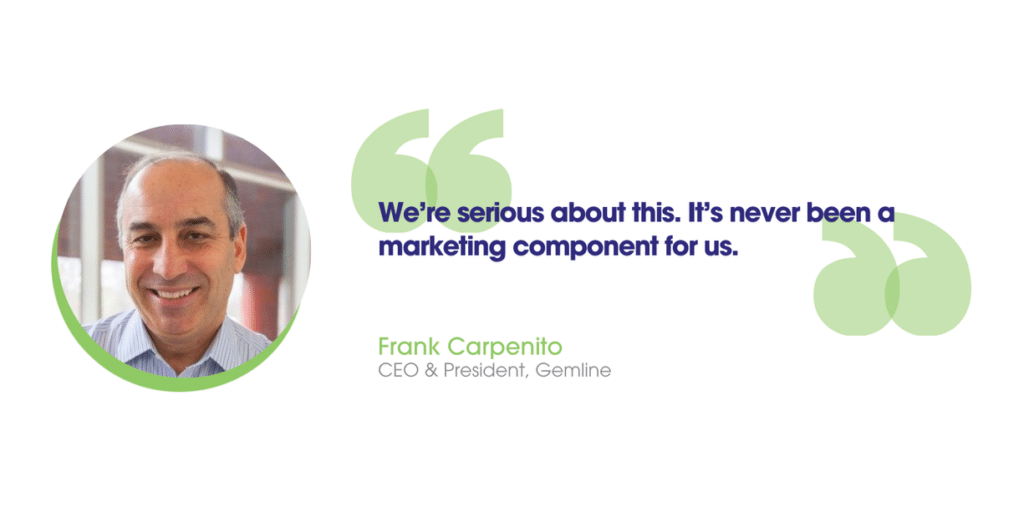 “It was really just a reaffirmation and then raising the bar of accountability on ourselves with our stakeholders, with our customers, our employees, our suppliers, our community.” says Frank Carpenito, CEO and president of Gemline. “We’re serious about this. It’s never been a marketing component for us.”