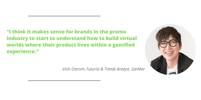 “I think it makes sense for brands in the promo industry to start to understand how to build virtual worlds where their product lives within a gamified experience,” Ostrom says.