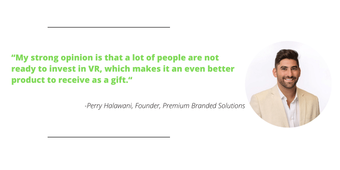 - Premium Branded Solutions, based out of Delaware, has offered the Oculus Quest for approximately two years. Founder Perry Halawani says the company typically sees distributors sourcing this product for high end, in-person recognition gifts for executives.