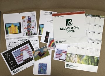 For several years, distributor Bankers Advertising Company and regional bank MidWest One have worked together to develop a unique customer campaign. Using three pieces—a custom calendar, a set of notecards and a stock calendar—all created by supplier Tru Art Advertising Calendars.