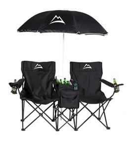 Get the party started with the all-in-one Music Vacation, a portable set that includes two chairs, a cooler, umbrella and speakers. Perfect for tea (or tequila) for two.