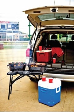 Houstonians are serious about their barbeque––even when tailgating––so you’ll see lots of fancy mobile smokers and beef brisket.