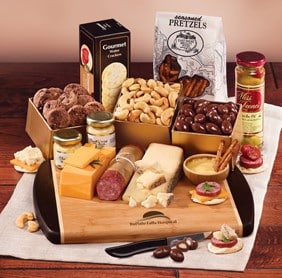Tailgating partiers will happily feast on the goodies in the Java Board with Gourmet Selections, which includes a variety of delicious treats—cheeses, nuts, sausages, olives, crackers, cookies and more—to get any tailgating party rolling. It comes with an earth-friendly bamboo cutting board that can be fire-branded with the client’s logo for enduring brand impressions. Long after the gourmet treats have been enjoyed, the cutting board will be a lasting reminder of your gift.
