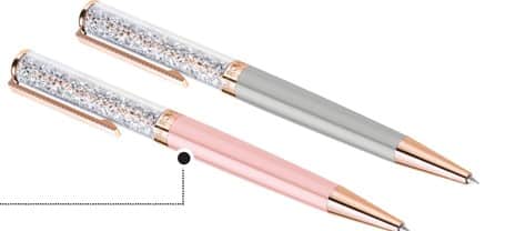 Working from home this summer? Give your home office a glow by adding some sparkle to your daily routine with this set of two Swarovski Crystalline Ballpoint Pens. Perfectly combining fashion with functionality, they are filled with hundreds of clear Swarovski crystals using the Crystalline technique, and feature one pink- and one gray-lacquered metal barrel with rose-gold tone plated accents. Looking for the perfect gift-ready item? These gorgeous pens are delivered in an elegant blue box. Both pens come with a replaceable, high-quality ink refill.