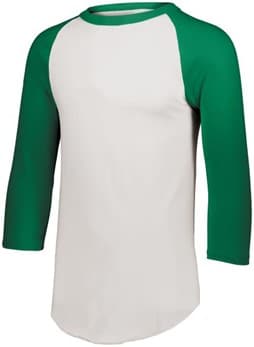 Whether you’re a player or a fan, raglan-style tees add flair to any sporty style. The Augusta Baseball Jersey 2.0 is made from a soft blend of jersey/polyester, featuring a new slimmer fit and a wider neck. Crafted not to fade or shrink in the wash, this jersey is made to last well after the season ends. Available in unisex sizes S-4XL in 16 colors, shown in white/Kelly green.