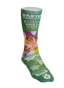 A school’s athletic booster club was seeking a fundraising item to sell to its students, fans and school supporters. The school selected the Full Color Unisex 18-inch Tube Promo Socks because of the unisex sizing, which includes a heel-less crew tube design. Printed in a fun, colorful design with the option to imprint different designs on each side at no additional cost, the school ordered extra socks to sell in the sporting event concession stands after the event culminated—and they sold out of every pair. For their next fundraiser, the school plans to offer the socks again, incorporating a student art contest for the selected design.