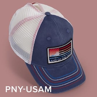 For brands looking to show pride for their American roots, the PNY-USAM cap features Americana flourishes with many added features. It’s made using Q3 fabric—quickwick, quick-cool, quick-dry—which wicks moisture away from the skin and transfers it onto the fabric’s surface to be evaporated, keeping the wearer cool, and QTechCooling technology, which reduces temperatures by five degrees Fahrenheit and offers 40+ UPF protection. Available in youth and adult sizes, XS-2XL in navy Americana (shown).