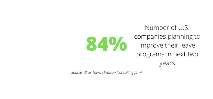 These dynamics are showing in the competition for top talent. According to a survey conducted by the consulting firm Willis Towers Watson, 84% of U.S. employers plan to make changes to their leave programs within the next two years in order to improve retention.