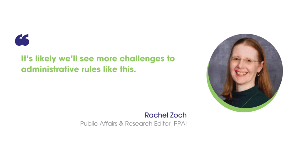 Rachel Zoch, public affairs and research editor at PPAI, says that the U.S. Supreme Court overturned a 40-year precedent of deference to federal agencies in June, “so it’s likely we’ll see more challenges to administrative rules like this.”