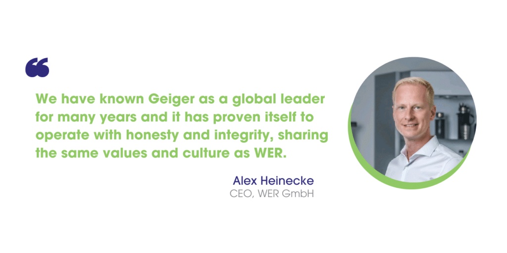 “We have known Geiger as a global leader for many years and it has proven itself to operate with honesty and integrity, sharing the same values and culture as WER,” says Alex Heinecke, CEO of WER GmbH.