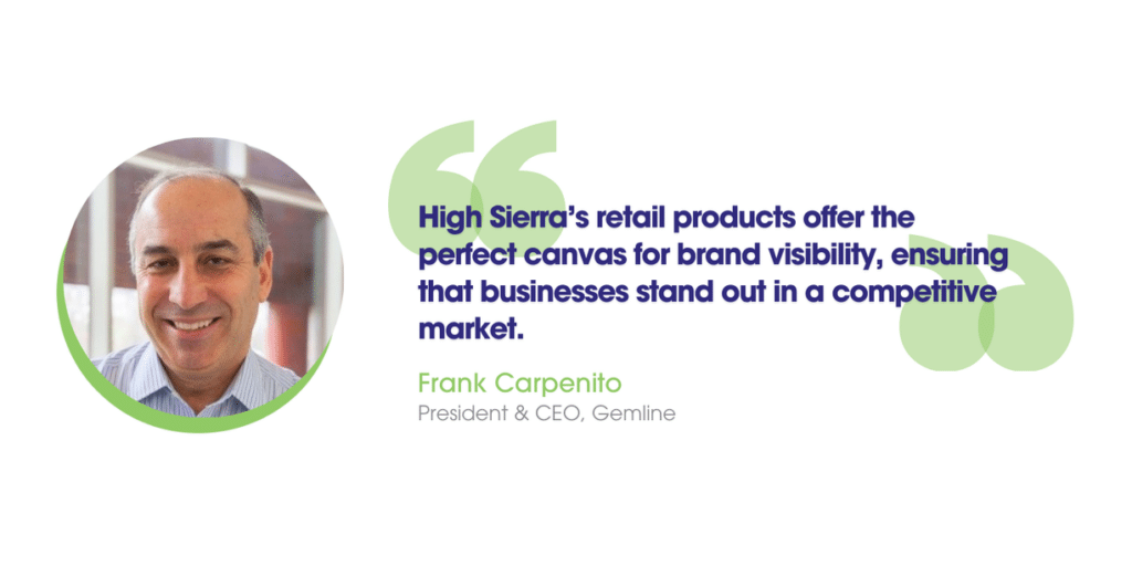 “High Sierra’s retail products offer the perfect canvas for brand visibility, ensuring that businesses stand out in a competitive market, and it’s the first time these retail products have been offered in the promotional channel,” says Carpenito.