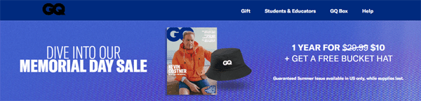 But there’s a twist: The page features an ad for a bucket hat emblazoned with the GQ logo as an enticement for new subscribers.