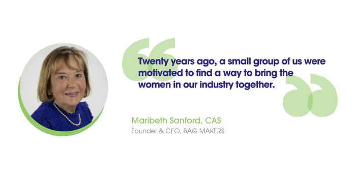 “Twenty years ago, a small group of us were motivated to find a way to bring the women in our industry together, because we knew what women can accomplish when we work together,” recalls Maribeth Sanford, CAS, founder and CEO of BAG MAKERS.