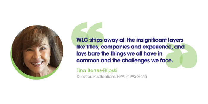 Tina Berres-Filipski, Director, Publications, PPAI (1995-2022): There’s something very special about WLC that no other conference can match. Somehow, WLC strips away all the insignificant layers like titles, companies and experience, and lays bare the things we all have in common and the challenges we face – like striving to be the best version of ourselves and finding balance in our lives. This created a bond that only got stronger at the subsequent conferences. WLC is an experience that will always stay with me.