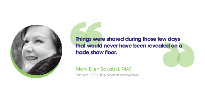 Sokalski: It was magic. Things were shared during those few days that would never have been revealed on a trade show floor. Yes, business tips, mentoring, best practices, but far beyond that. How women were juggling careers, personal lives, kids, volunteering. Working with tough employees and employers. Budgeting your time. Wins and losses. Heartbreak and triumphs. Some took place during sessions but most in between; breaks, at dinner, between muffins, over a cocktail or two.