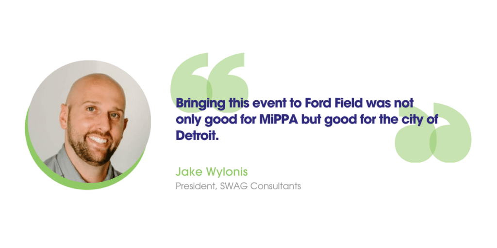 “Bringing this event to Ford Field was not only good for MiPPA but good for the city,” Wylonis says. “It’s great to have all our clients out here and show them what we can do in Detroit.”