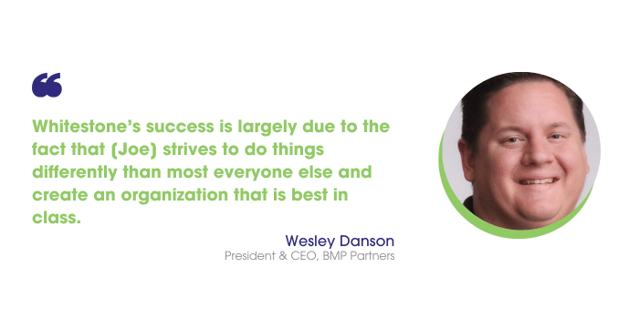 “Differing perspectives, fresh ideas and a wholesale new way of thinking help all of us to be better leaders in our organizations and the industry at large, and Joseph is paramount to leading that charge,” Danson says. “Whitestone’s success is largely due to the fact that he strives to do things differently than most everyone else and create an organization that is best in class.”