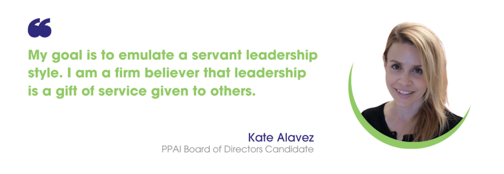 Kate Alavez: The PPAI Board has always been a guiding force for good in the industry. I have consistently been impressed by the PPAI brand and the presence of their team, from the corporate office to their boardrooms. The members who serve on the PPAI Board are true professionals who care about contributions to the industry but also to individual members. They are a board that operates by affecting change – an operational group of action-based members looking to create value and impact across all positions – not just C-suite roles.