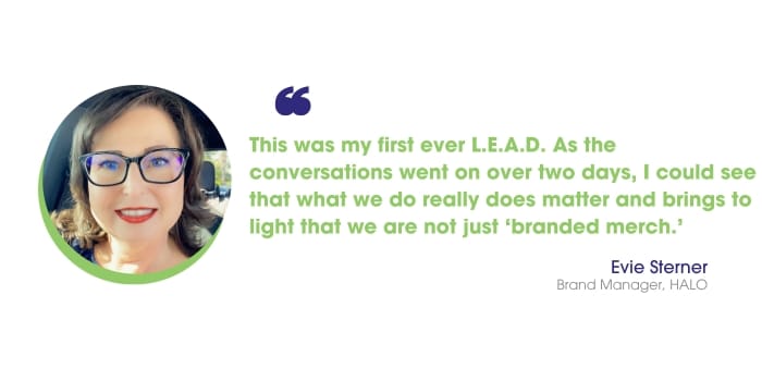 “Out of the gate there was a little lump in my throat, but talking about our industry which I have been a part of for over 20 years and bringing real life client situations in on the conversation became easier. As those conversations went on over the two days, I could see that what we do really does matter and bringing to light that we are not just ‘branded merch.’”