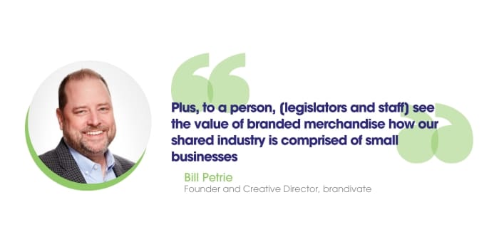 Bill Petrie, founder and creative director at brandivate and recipient of PPAI’s 2024 Distinguished Service Award, adds, “This is my ninth L.E.A.D. and was easily the most impactful one. The legislators and staff I was fortunate enough to meet with were very receptive to our asks – especially regarding the need to clarify the Department of Labor rules regarding how to classify independent contractors in the promotional products industry. Plus, to a person, they see the value of branded merchandise and how our shared industry is comprised of small businesses.”