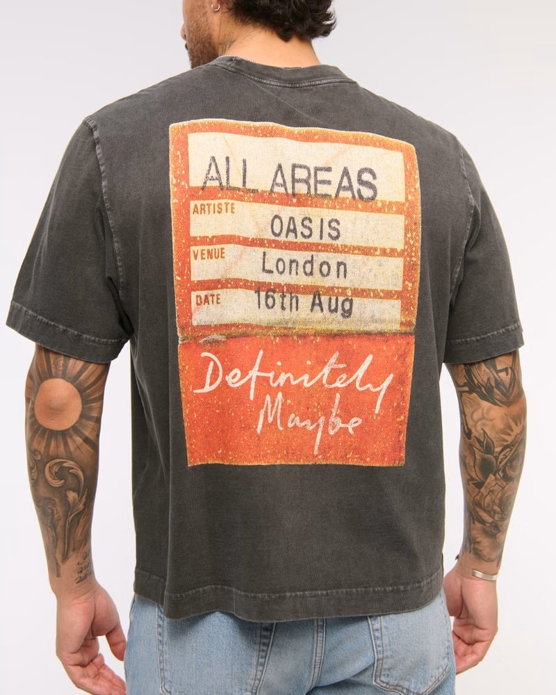 ’90s mall rat royalty: Abercrombie, PacSun, American Eagle and Gap are all riding the Oasis wave with officially licensed gear. There’s even an Amazon storefront, stocked with reissues, box sets and hoodies so perfectly faded you can almost smell the Marlboro Lights and CK One.