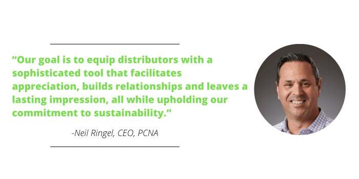 “We’re empowering our distributors to offer personalized, meaningful gifts with ease,” says Neil Ringel, CEO of PCNA. “Our goal is to equip distributors with a sophisticated tool that facilitates appreciation, builds relationships and leaves a lasting impression, all while upholding our commitment to sustainability.”