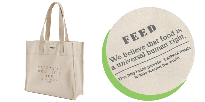 Some of the best-selling retail brands in the lineup are attached to give-back causes, like Lauren Bush Lauren’s FEED bags. Printed inside each bag as a reminder of its impact is the number of meals donated to schoolchildren thanks to the purchase. Often, these donated meals are their only food for the day.