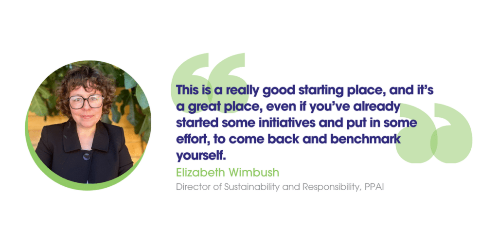 “This really starts to narrow your scope and gives you a better sense of what you can do,” says Elizabeth Wimbush, PPAI’s director of sustainability and responsibility, who played a large role in helping curate the specifics of the partnership.
