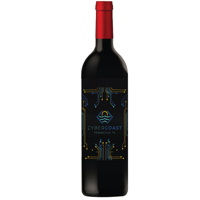 Creating this design for Cyber Coast required precise skill, as errors in A+ Wine Designs’ sand carving process can’t be easily corrected. The design uses a three-color etch pattern that frames the Cyber Coast logo, creating a textured background on the bottle. The logo itself was etched within the framed background, giving it the feel of a portrait on a canvas. The etch was achieved with an applied mask to protect the uncarved areas. Finally, spray paint was applied to give the bottle its color palette. All this gives a brand the sophisticated look associated with vineyards.