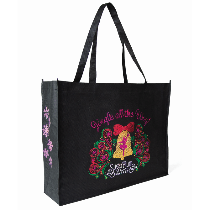 Working with the distributor CNA Advertising, BAG MAKERS created bags for the annual SugarPlum Market outside of Houston. The shopping bags have become a beloved souvenir among attendees at the holiday market, which draws 100-plus vendors from across Texas. It’s no surprise, then, that there was an element of pressure in delivering the products. The front of the bag featured a sparkle imprint of the event theme, incorporating five glossy holographic dot colors. It also featured ColorVista imprints of snowflakes in the gussets and sponsor logos on the back. The event attracted 6,000 shoppers and raised more than $350,000 for charity.