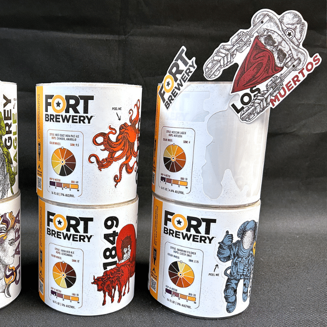 Fort Worth, Texas-based Fort Brewery wanted a set of six distinct beer can labels for the release of its latest batch of brews. The labels were to be themed around Fort Worth historical events with the hopes of generating excitement among community customers. Strouse went with Drink N Peel Labels, which give customers a removable sticker with each can of beer. Upon receiving the art, the supplier printed and married two layers of biaxially oriented polypropylene (aka BOPP) material together with a silicone layer in between and finished the labels using laser cutting equipment.