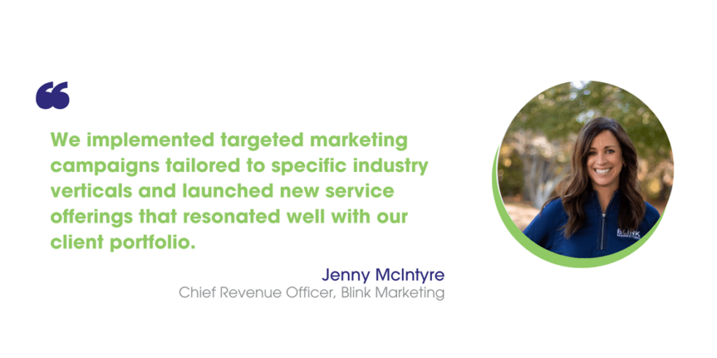 Jenny McIntyre, chief revenue officer at Blink Marketing, attributes the growth to focused efforts on driving sales. “We implemented targeted marketing campaigns tailored to specific industry verticals and launched new service offerings that resonated well with our client portfolio,” McIntyre says.