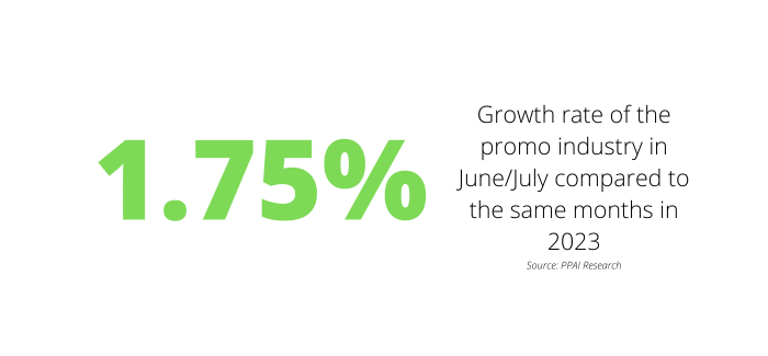 The industry continues its modest pace of continued revenue growth, according to PPAI Research’s latest bi-monthly snapshot. In June and July, the industry grew by 1.75% over the same period in 2023.