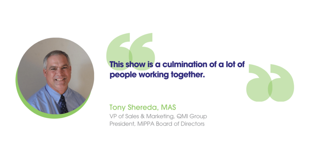 “This show is a culmination of a lot of people working together, especially Paul,” said Tony Shereda, MAS, president of MiPPA’s board of directors and vice president of sales and marketing at QMI Group.