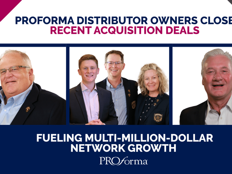 Proforma (PPAI 196835, Platinum), PPAI 100’s No. 3 distributor, has announced that three of its distributor owners recently expanded their presence and service offerings through acquisitions. Collectively, the deals bring millions in annual sales to the Proforma Network.