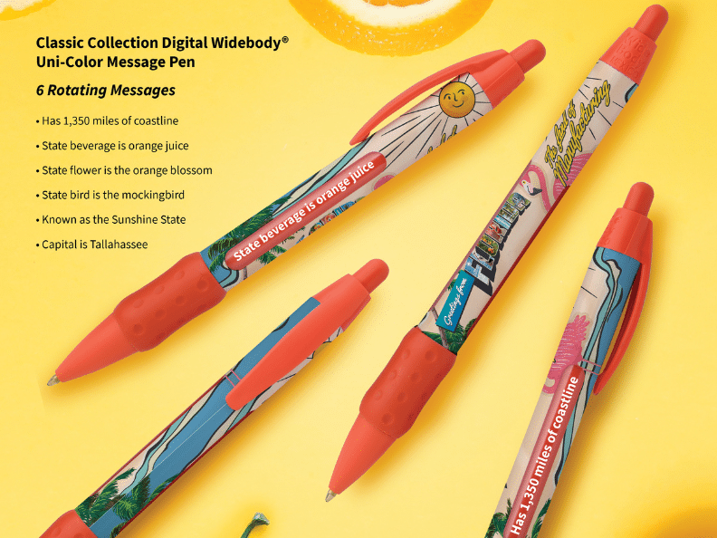 Koozie Group (PPAI 114187, Platinum), PPAI 100’s No. 11 supplier, has announced that its Classic Collection Digital Widebody Uni-Color Message Pen has been named a top 32 finalist in the Florida Chamber of Commerce’s “Coolest Thing Made in Florida” contest