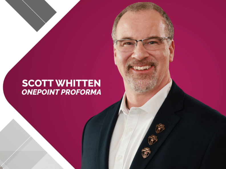 Proforma (PPAI 196835, Platinum), PPAI 100’s No. 3 distributor, has announced that Scott Whitten, owner of OnePoint Proforma, recently closed a million-dollar acquisition deal that was aligned through Proforma’s ProMatch software.