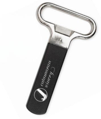 Add a winery’s logo to the Ahah! Wine Opener for a practical keepsake from a tasting or club event. It features two stainless steel prongs and a built-in bottle opener.