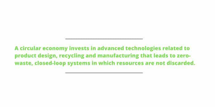 The driving factor for many of these policies is the goal of moving away from a linear economy, which entails taking, making, consuming and disposing of resources. Governments are instead seeking a circular economy that invests in advanced technologies related to product design, recycling and manufacturing that leads to zero-waste, closed-loop systems in which resources are not discarded. The elements of a closed loop entail production, usage, reduction, recycling and reuse.