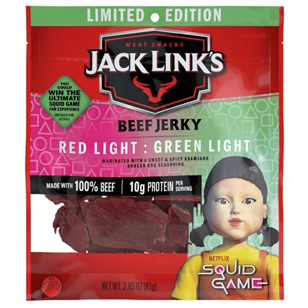 If you thought Squid Game was only about apparel and drinks, think again. Jack Link’s Red brings together rich, sweet and spicy Korean flavors with Jack Link’s signature beef jerky for a unique taste. As a fun twist, the jerky has a cheeky Scoville Heat Rating of 456, matching the number of players in the show.