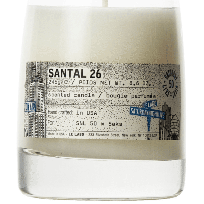 Le Labo Fragrances created a specialized version of its Classic Candle in its signature SANTAL 26 scent, with an SNL-themed label reading, “Live from New York, it’s SANTAL 26!”