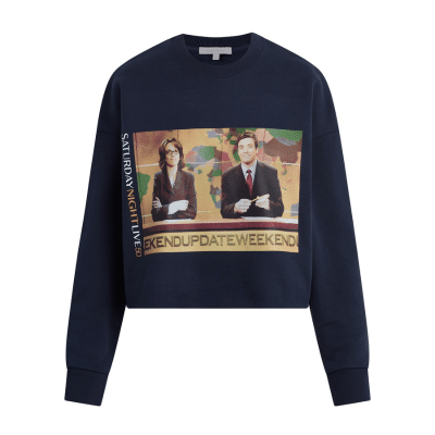 Through February 10, customers can visit the Saks Fifth Avenue New York flagship to discover the pop-up shop on the fifth floor surrounded by SNL 50th anniversary signage. From January 23 through February 24, West Coasters can grab merch on the main floor at Saks Fifth Avenue’s women’s store on Wilshire Boulevard in Beverly Hills.