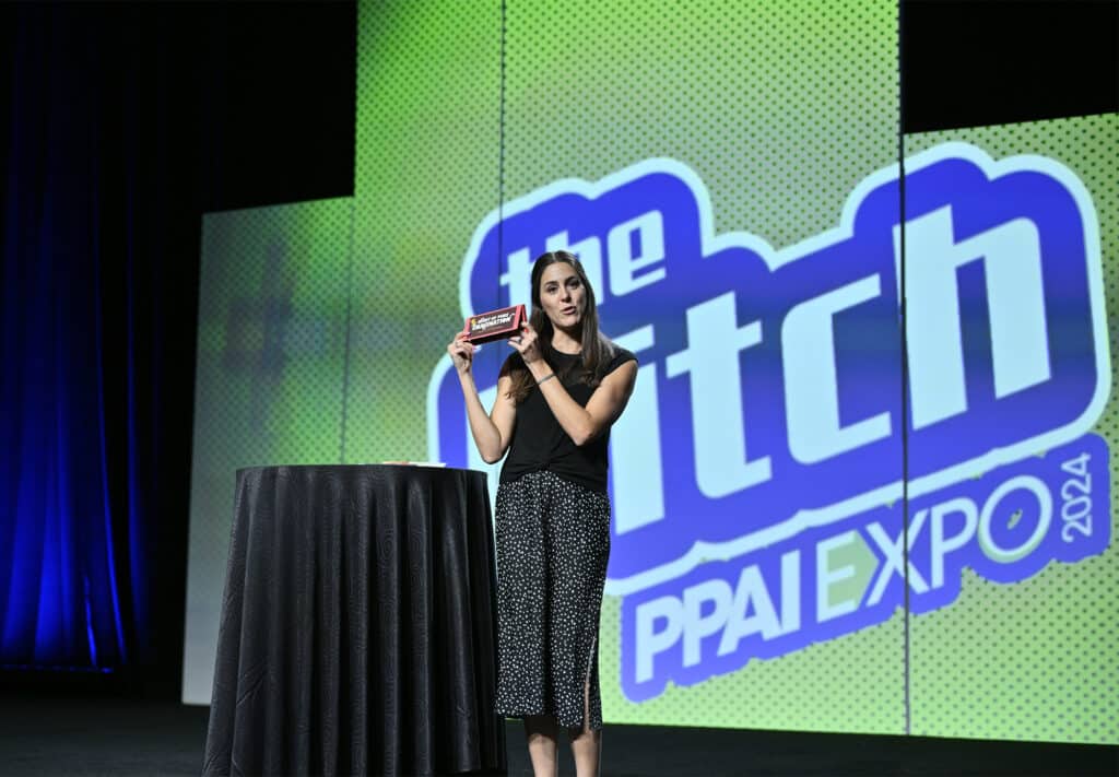 The Port St. Lucie, Florida-based supplier of blinged-out apparel and accessories turned heads at The PPAI Expo 2024 with strategic marketing and eye-catching product displays. Co-owner Tammy Cimperman didn’t just hold up her rhinestone tumblers and cross-body bags, which were showcased in the New Product Pavilion. She created a full sensory experience with her booth backdrop, a shimmering wall of sequins, and her team of “Foxyware Vegas Boys” – decked out in hot pink sequin jackets – and “Sparklenistas” – in equally glittering attire.