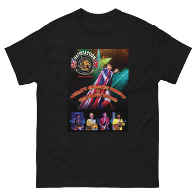 Satisfaction revised its promotional materials and merch to showcase a photo of the band along with a new logo featuring a Barbary lion (one of England’s national symbols) wearing a crown and sandwiched between the American flag and the Union Jack. The group has emblazoned that design on T-shirts, drinkware, a coaster, a flag and a tote bag, all of which are available on the band’s online store powered by Shopify.