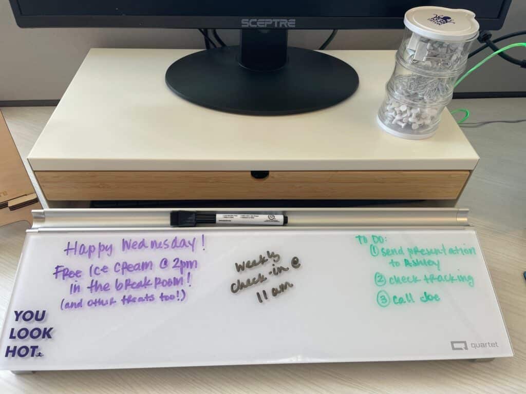 Comerford wants to try the Cipher Wood Frame Letter Board. “It’s great for welcoming new employees, wishing someone a happy birthday or just giving your team a chance to personalize their workspace while keeping it profesh,” she says.